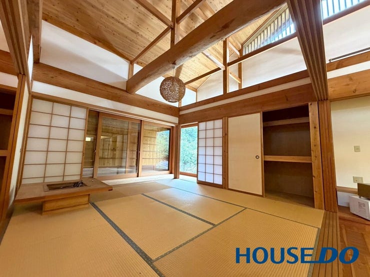 梁の味わい深い造りは、何度見ても飽きません♪自然と共生するも良し、民泊事業の目玉にするも良し、企業研修所としてもお使いいただけます。【無料相談0120-944-554】